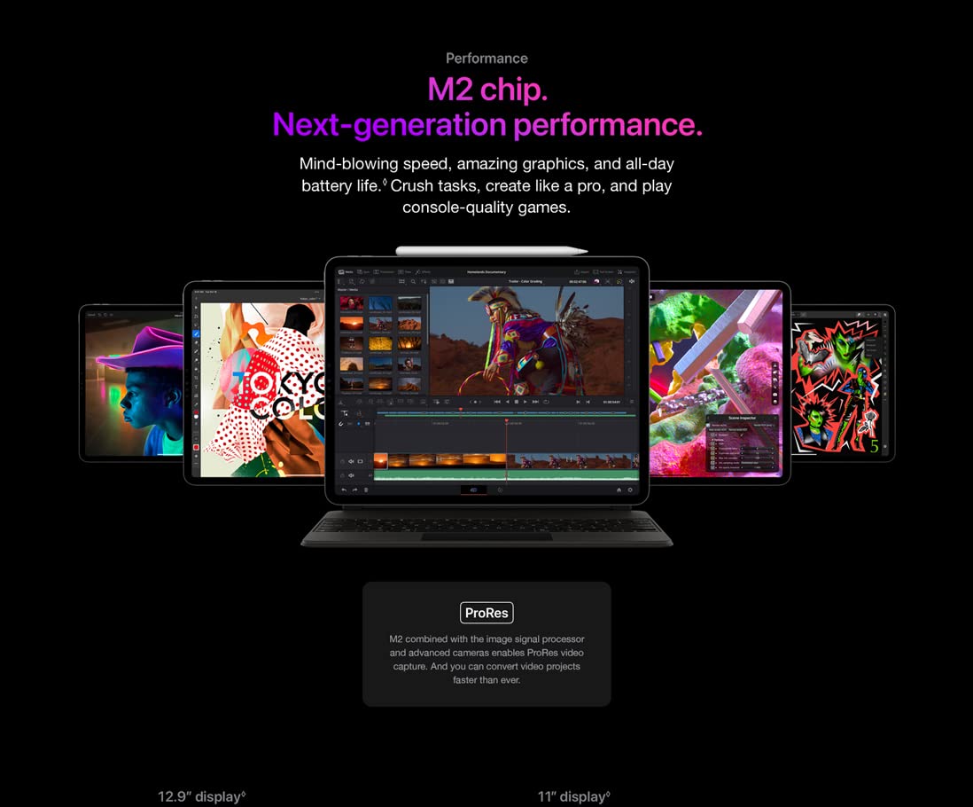 With a 40 percent faster Neural Engine to accelerate machine learning tasks and 50 percent more memory bandwidth, M2 brings astonishing performance and new capabilities to iPad Pro. So you can create photorealistic 3D designs, build intricate AR models, and play games with console‑quality graphics at high frame rates faster than ever. All while enjoying all‑day battery life.²