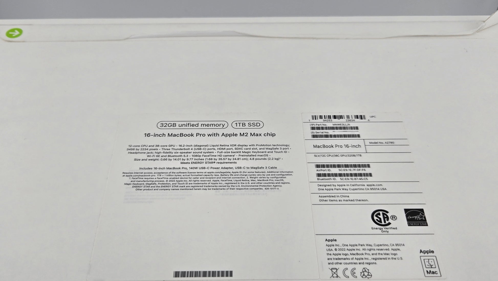 Apple MacBook Pro with Apple M2 Max Chip 16-inch, 32GB RAM, 1TB SSD Storage - Silver