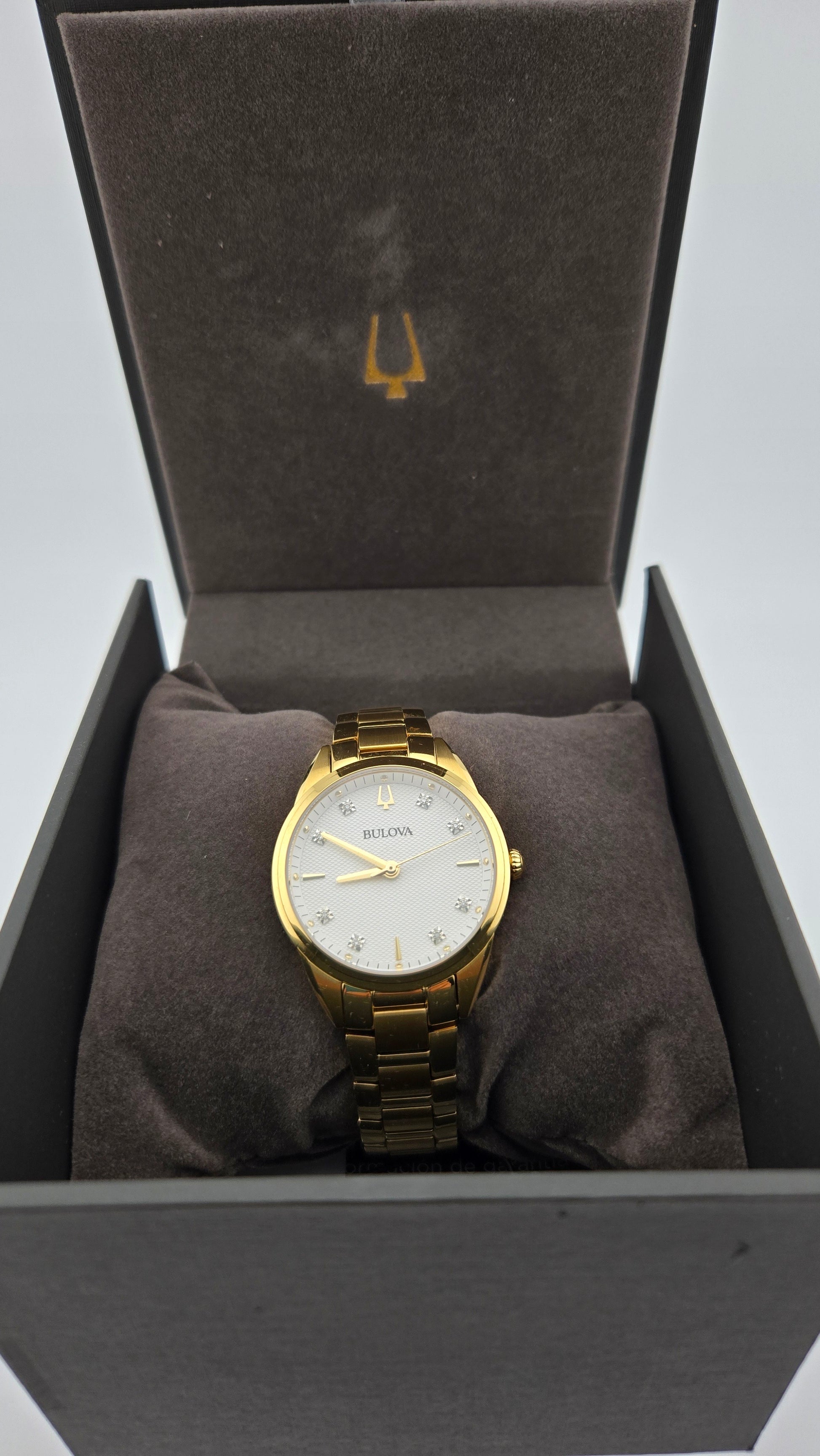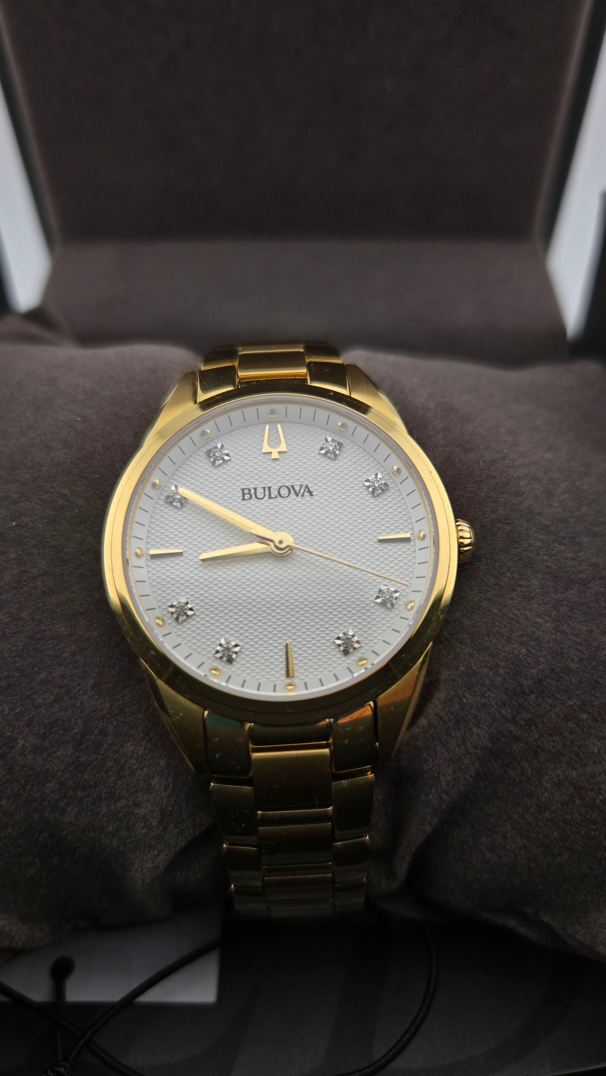 Bulova Diamond Accented Yellow Gold Toned Stainless Steel Wristwatch - 97P161