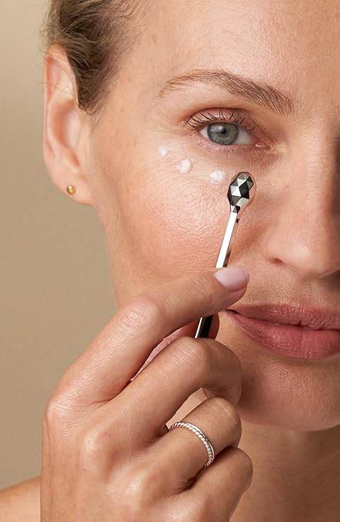 - Cooling Platinum-Coated Eye Massage Tool is weighted to ensure the ideal gentle pressure for the delicate eye area. The unique multi-faceted design provides micro-stimulation to the delicate eye-area skin.