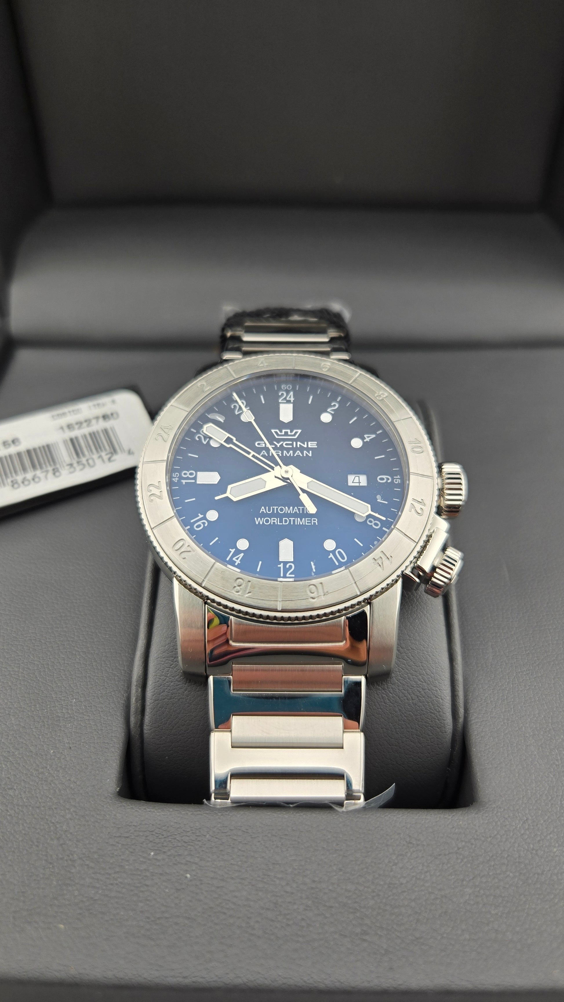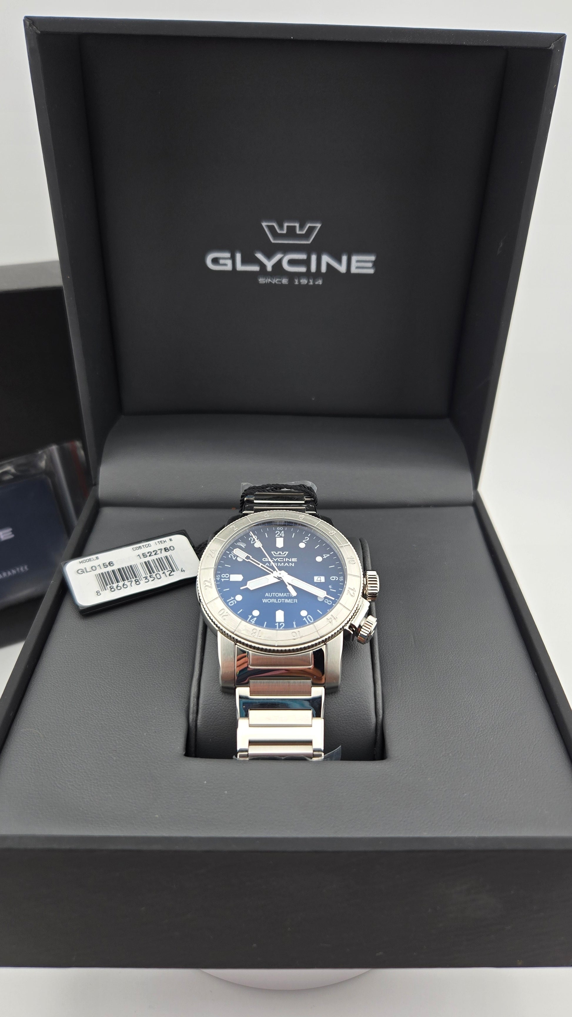 The Glycine Airman 44 GL0156 watch is a beautiful model made for elegant men. This model is powered by a reliable and commonly used automatic movement that is wound by the action of the wearer’s wrist. The watch features a steel case in silver colour and a precise movement. The bracelet made of high-quality stainless steel is a perfect complement to the watch's design. A clear blue dial is covered by a sapphire crystal, which is believed to be one of the best and most durable materials. The watch has a water resistance of 100 meters.