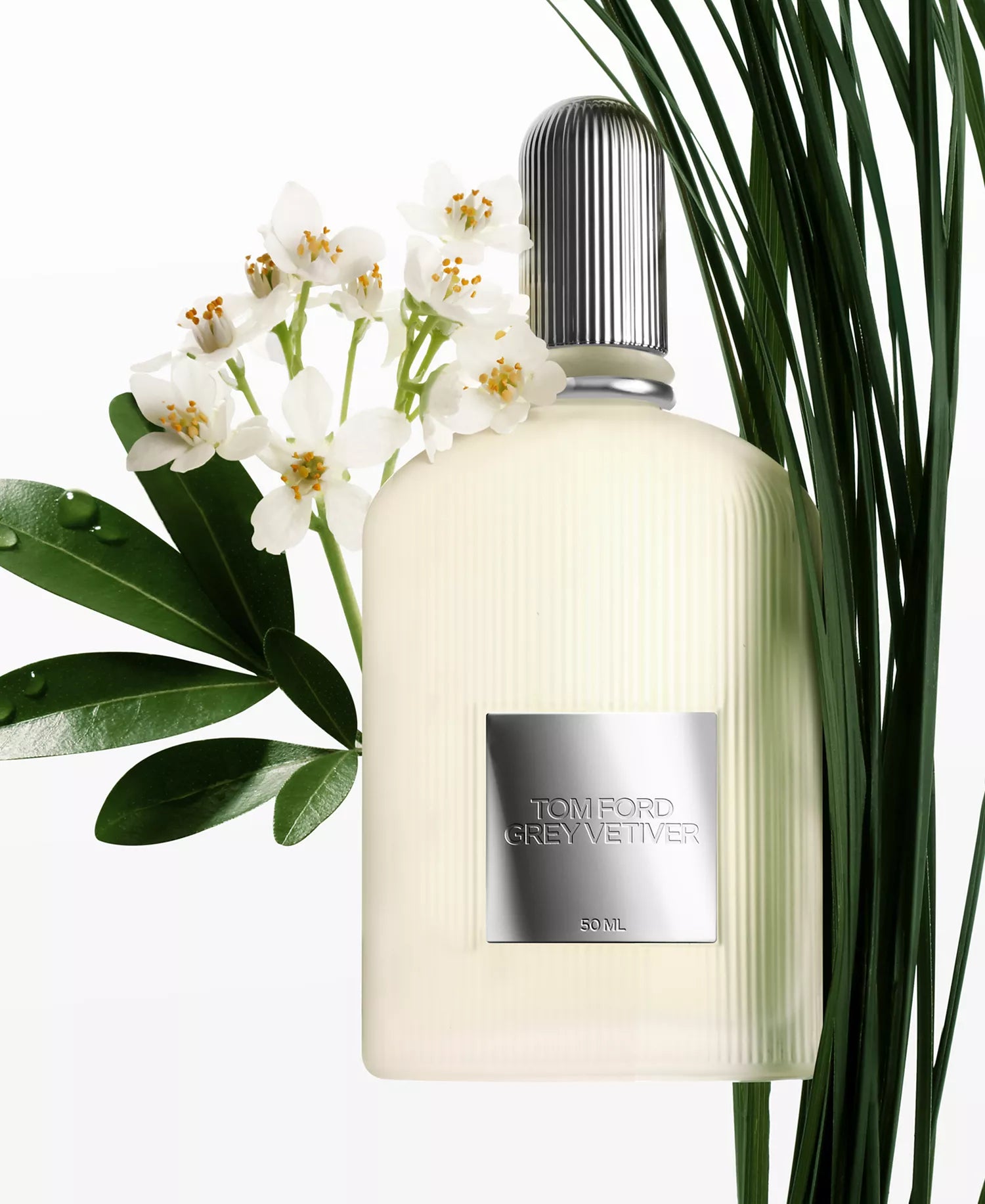 The GREY VETIVER fragrance masterfully expresses the essence of Tom Ford's menswear philosophy – capturing a cool, intriguing charisma by blending elegant and refined natural vetiver with sun-kissed citrus, rich spices and prized woods.